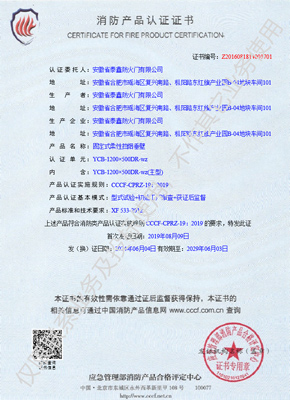 消防产品认证证书